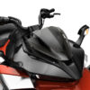 Sportwindscherm. Vervaardigd van 4,5 mm dik polycarbonaat. Biedt bescherming voor het onderlichaam. Wordt geleverd met steunen en onderdelen voor installatie. Transparant.